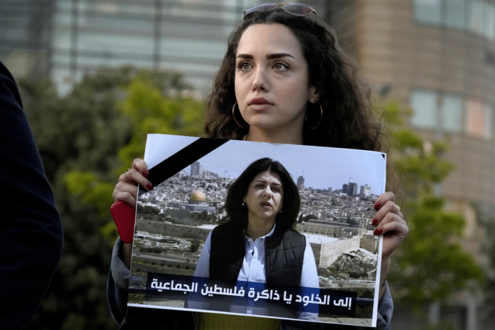 In foto, Asmaa Al Natour (con il cartello a sinistra)