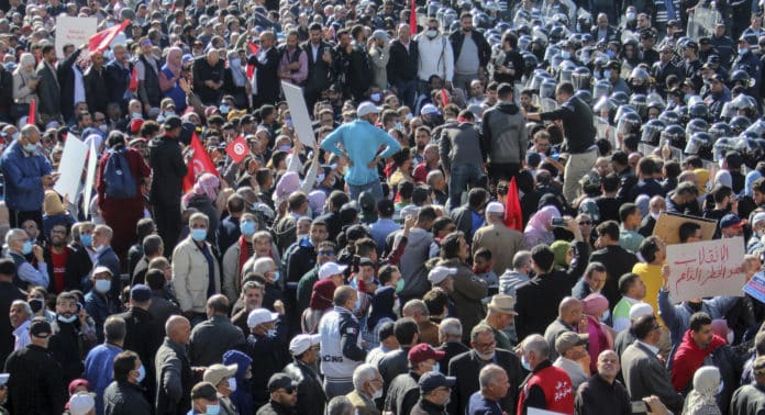 Nella foto: Tunisi, manifestazione del 14 novembre 2021 promossa dal movimento “Cittadini contro il colpo di Stato”